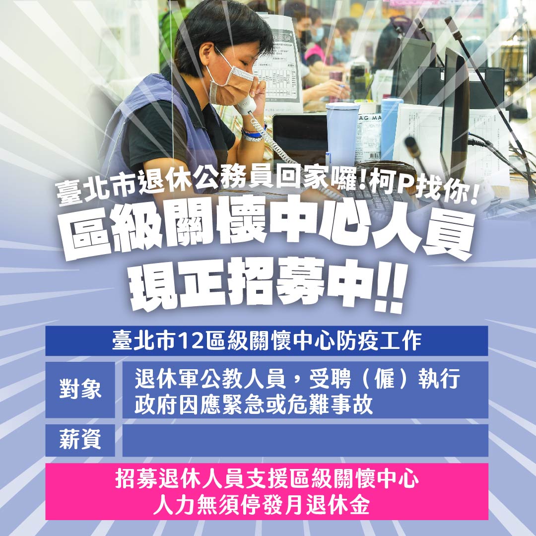 廣徵退休公教人員加入111年臺北市政府衛生局疾病管制科、本市各區健康服務中心及各區關懷中心