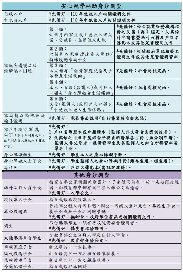 *此部分特殊身分請參考附件列表,若您具表格內身分,請先備好相關證明文件,再開始填寫表單。