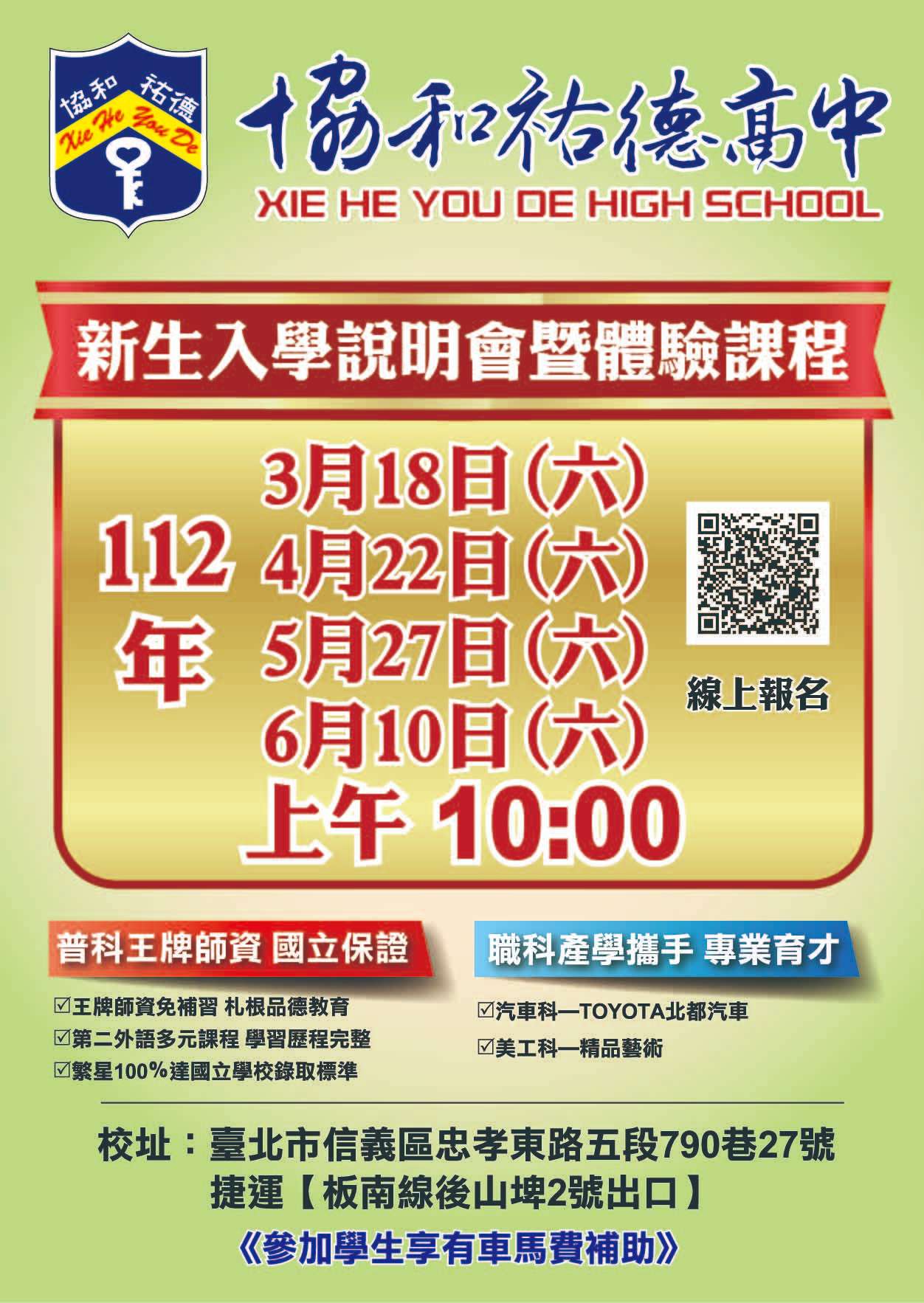 五、隨函檢附電子海報1份,惠請轉知九年級學生踴躍參加。