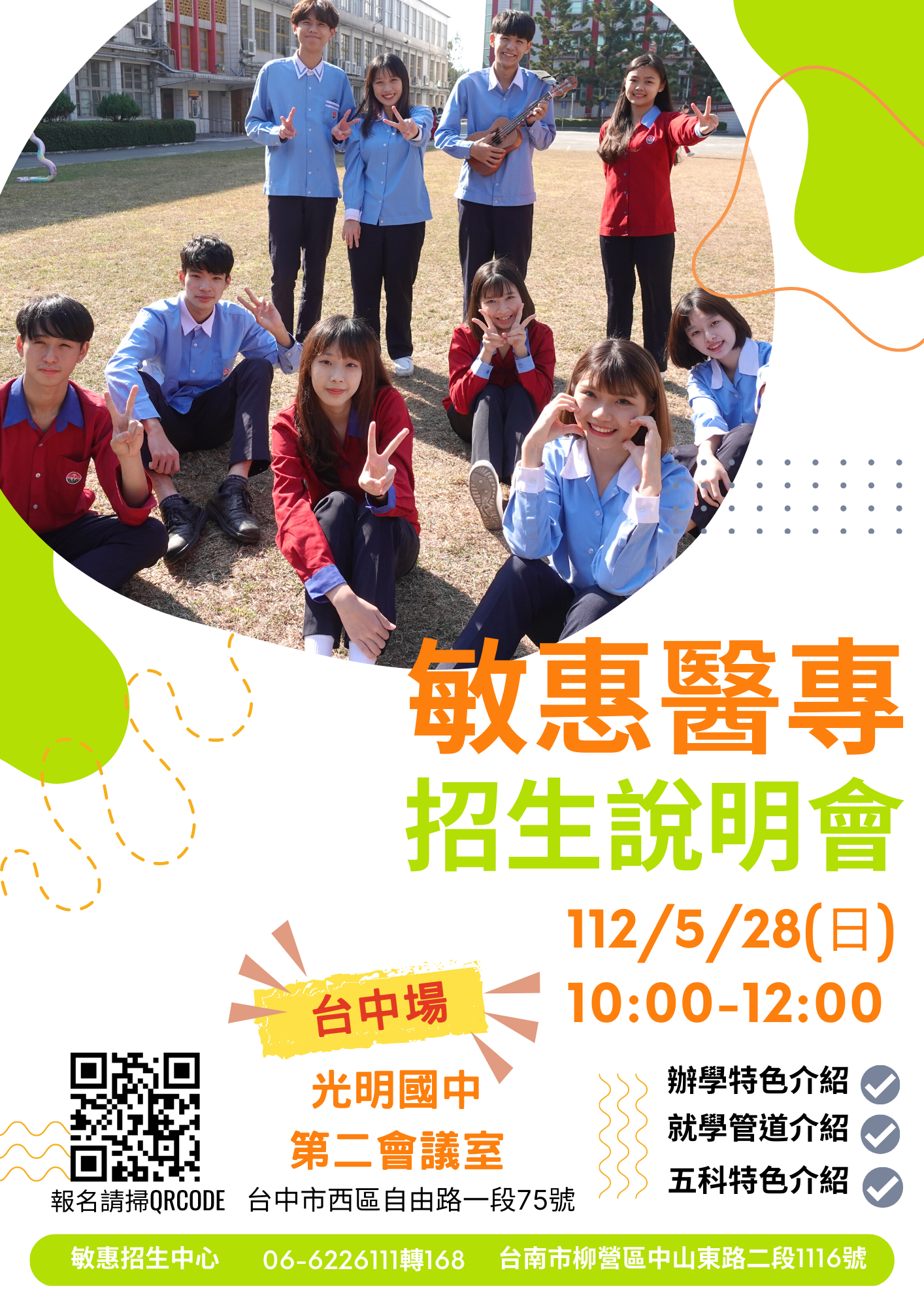 一、本校為五專醫護類學校, 設有「護理科」、「幼兒保育科」 、「美容保健科」、「牙體技術科」、「長期照顧與健康促進管理科」,為提供貴校學生及家長了解五專入學管道及升學醫護類科之未來發展。