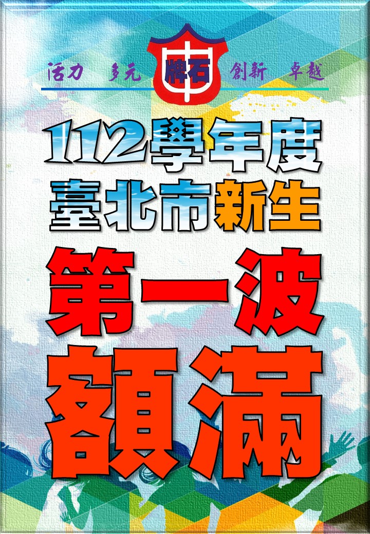 一、本校112學年度新生分發經臺北市政府教育局核定為第一波額滿學校,因無法容納所有新生,將依規定進行臺北市國小畢業生複審(112/5/8~10),以排定分發順序 (細節請詳閱初審結果/複審通知單)。