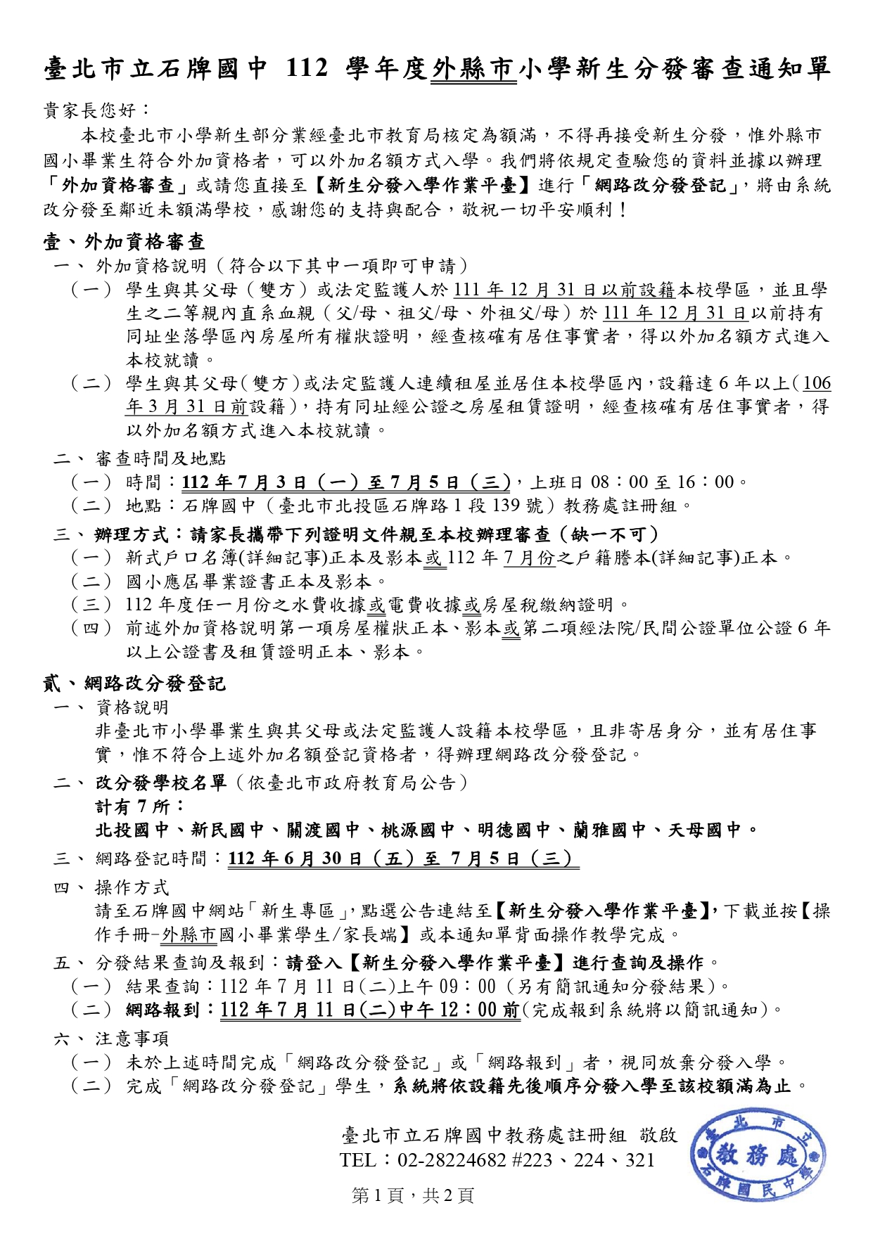 臺北市立石牌國民中學