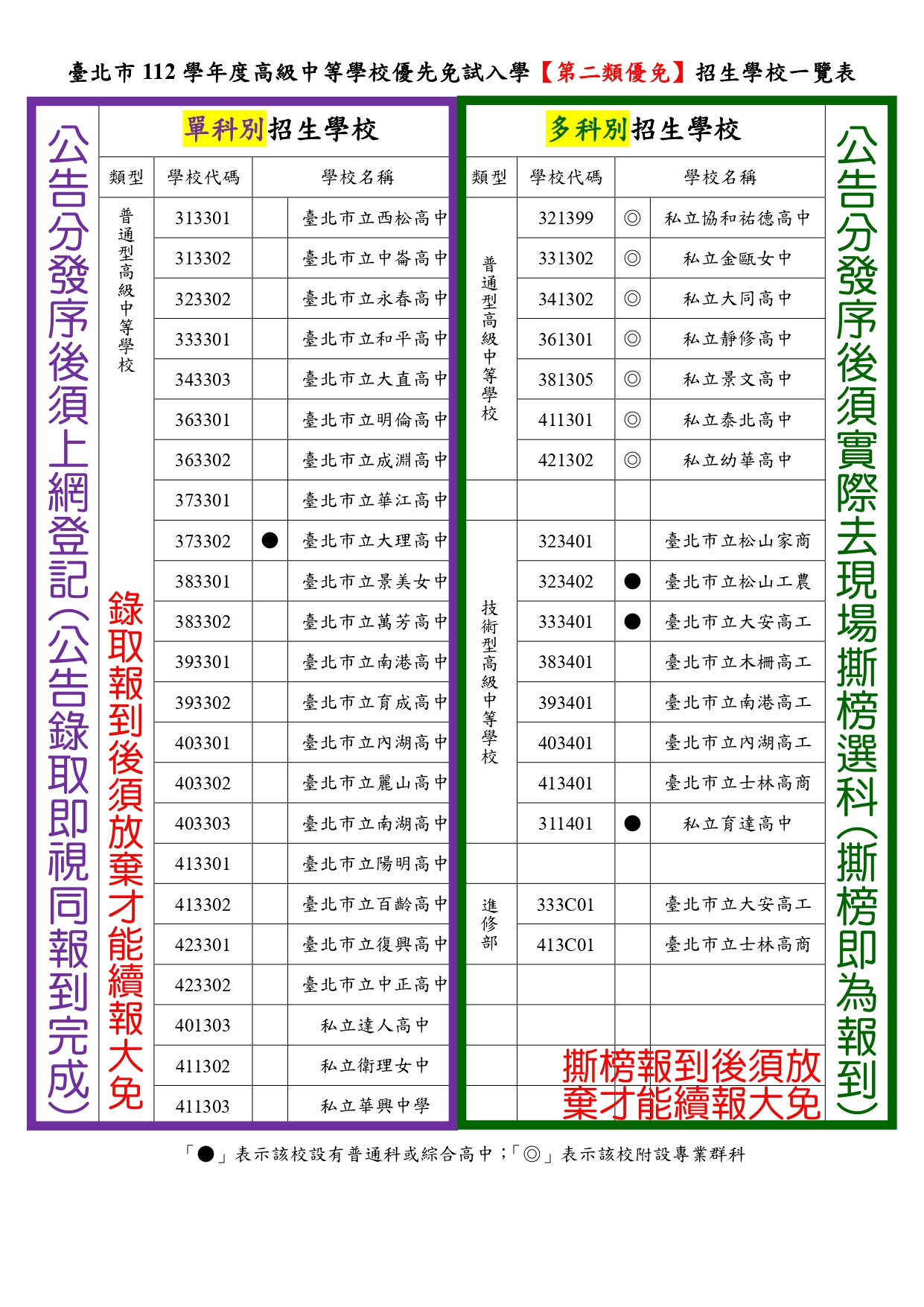 二免平台連結(請點):臺北市112學年度高級中等學校優先免試入學委員會資訊系統平台