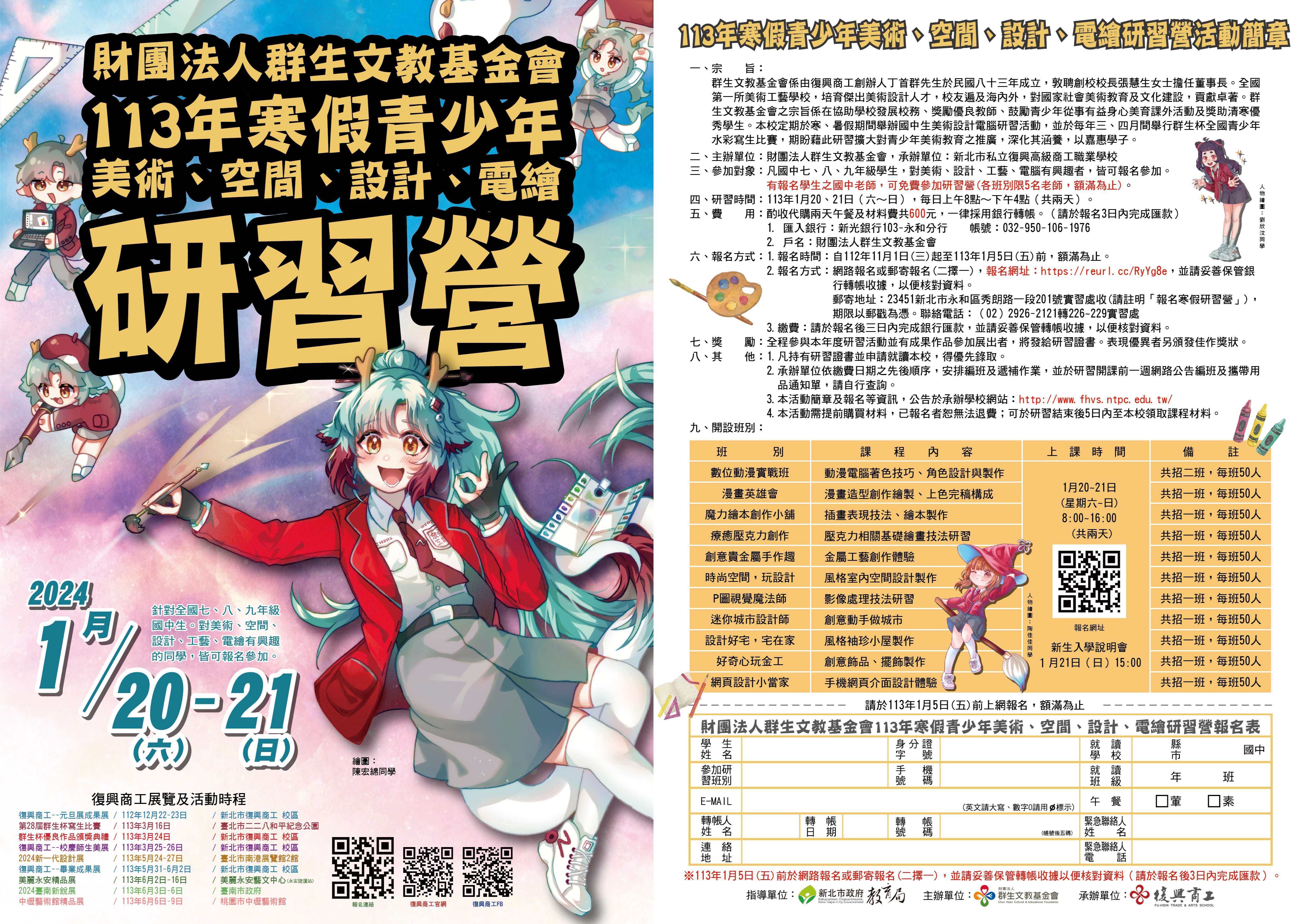 三、參加對象:凡全國國中七、八、九年級,對美術、設計、 工藝、電腦有興趣者,皆可報名參加