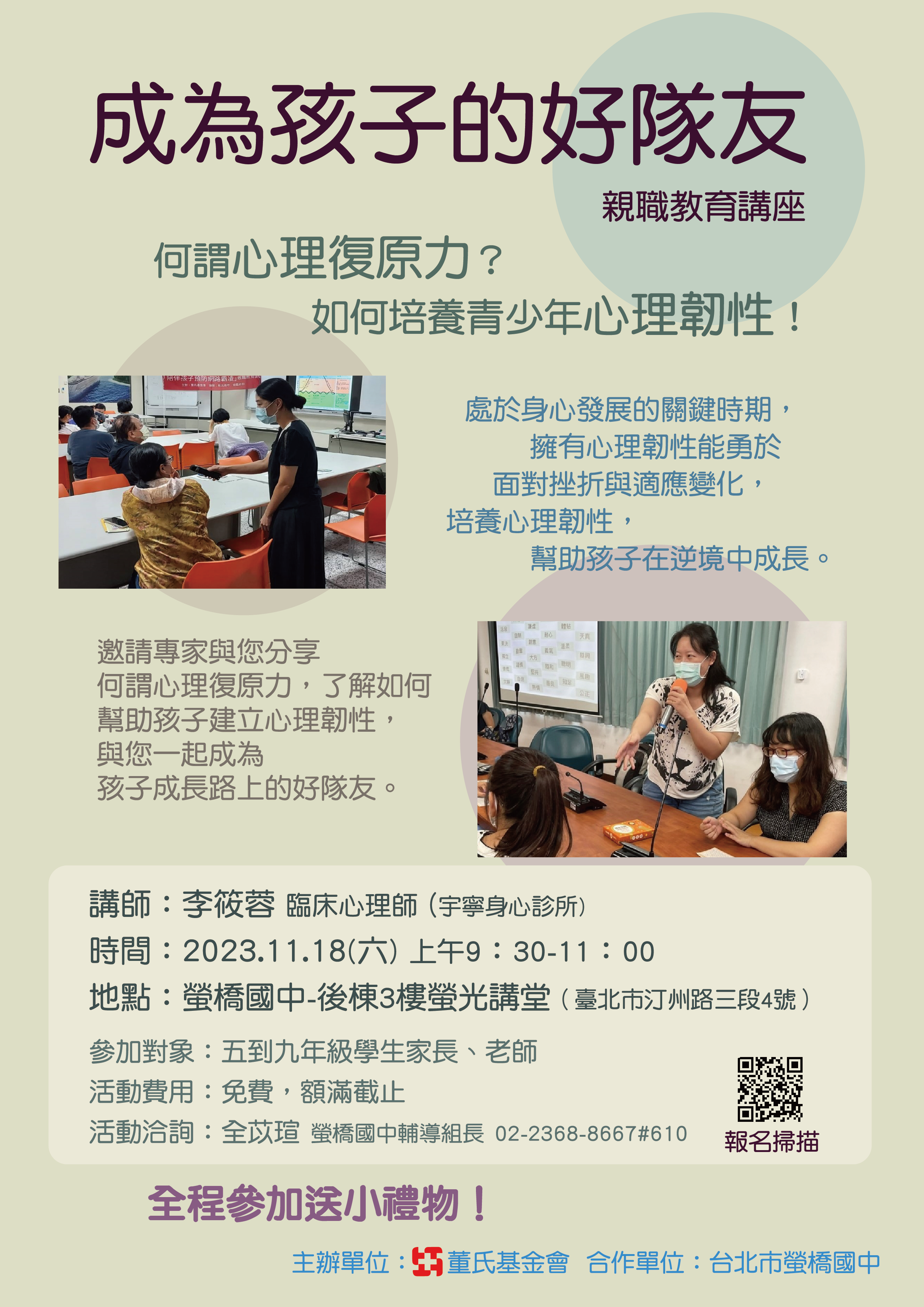 一、講座主題:「成為親子的好隊友」 何謂心理復原力?如何培養青少年心理韌性!
