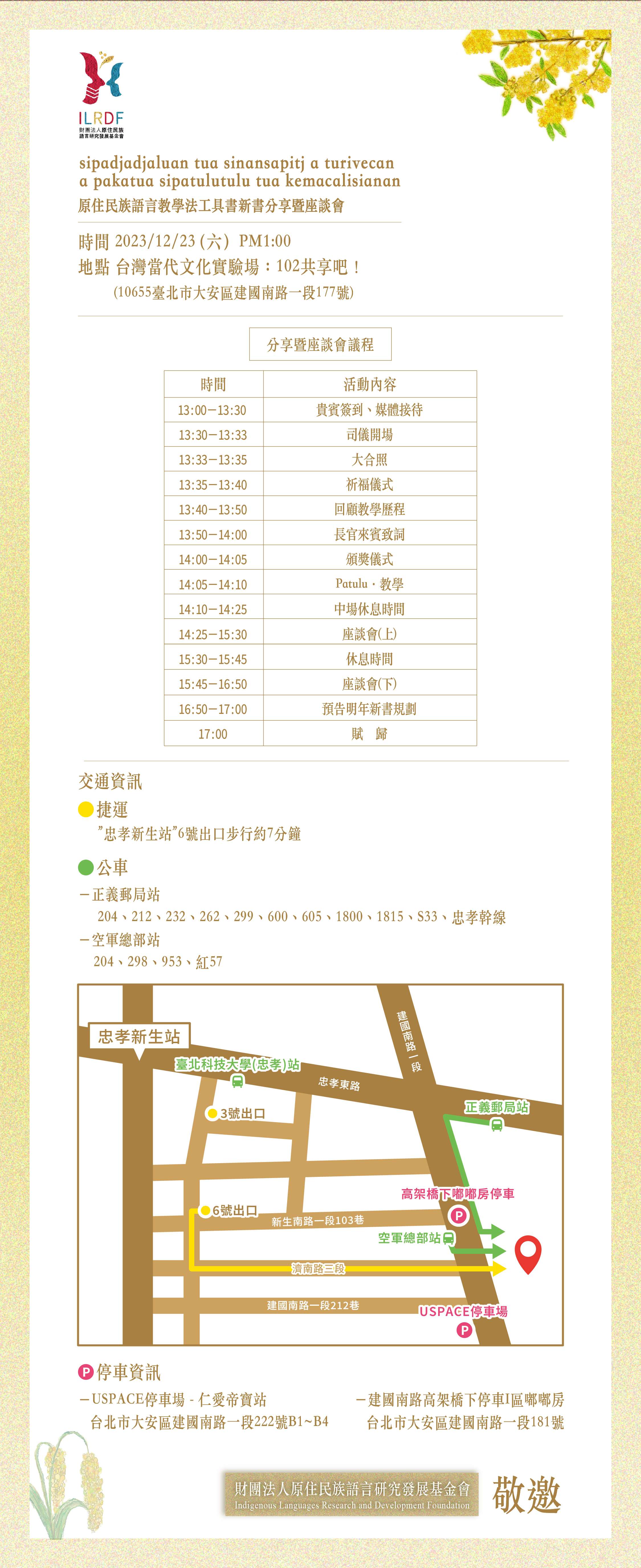 有關財團法人原住民族語言研究發展基金會辦理「112年度原住民族語言教學法工具書新書分享暨座談會」活動
