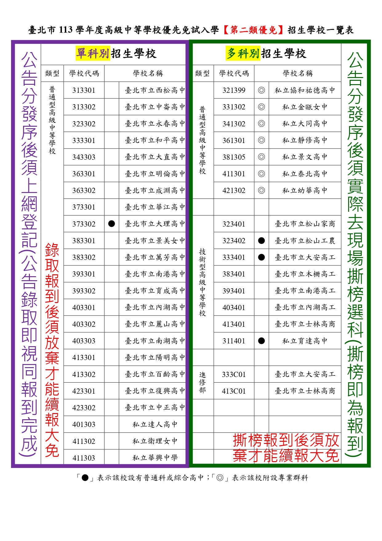 二免平台連結(請點):臺北市113學年度高級中等學校優先免試入學委員會資訊系統平台