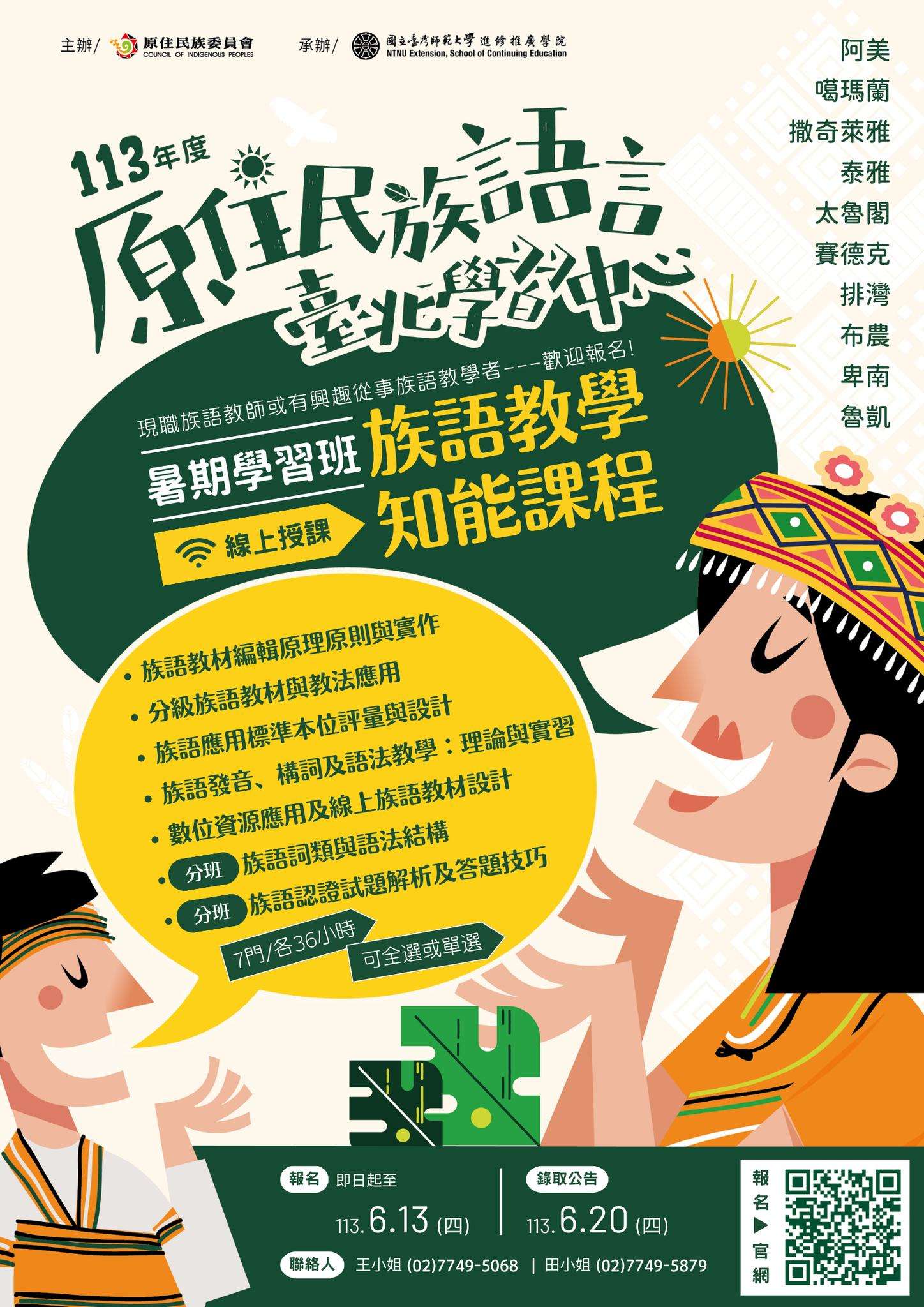 國立臺灣師範大學 原住民族語言臺北學習中心 113年度暑期 教學知能課程學習班 招生簡章及EDM