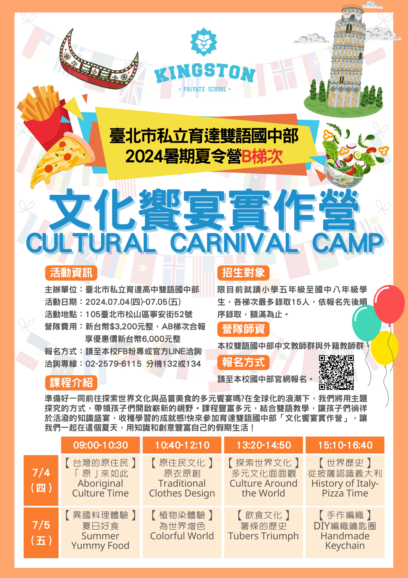 ( 二) 文化饗宴實作營:113年7月04日至7月05日,共2天,每