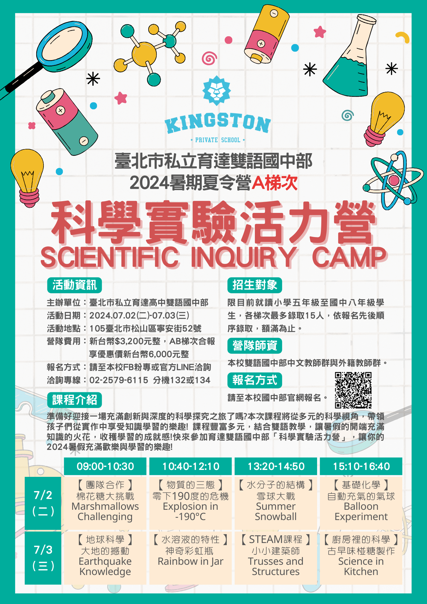 ( 一) 科學實驗活力營:113年7月02日至7月03日,共2天,每