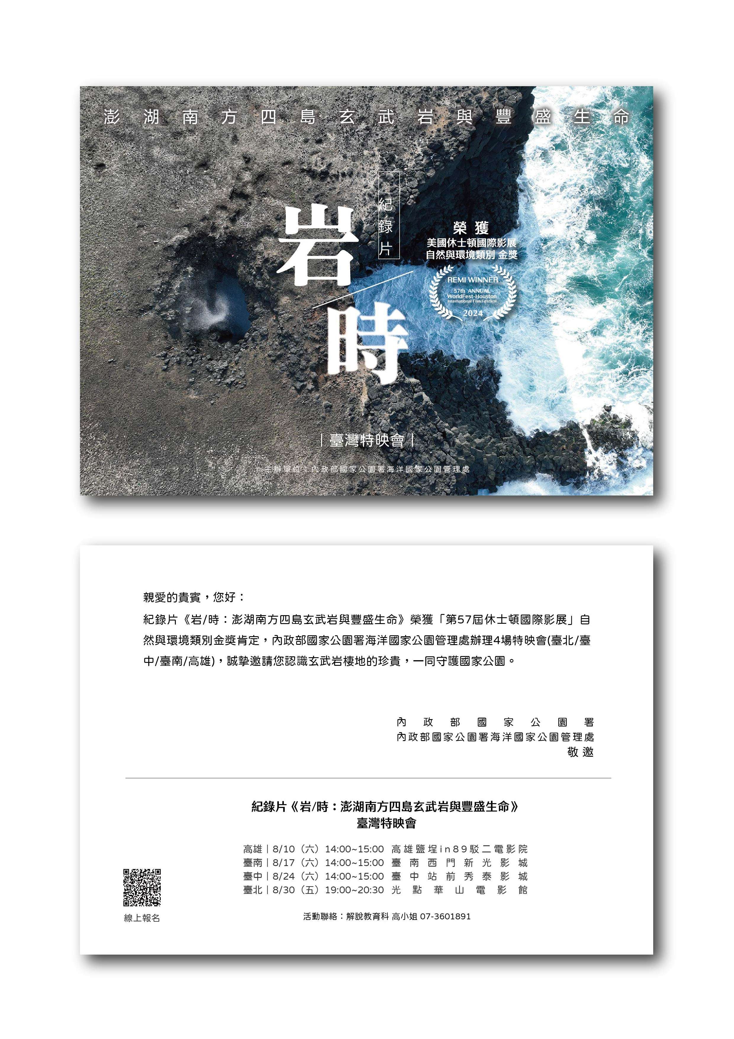 轉知內政部國家公園署海洋國家公園管理處辦理「紀錄片《岩/時:澎湖南方四島玄武岩與豐盛生命》臺灣特映會」
