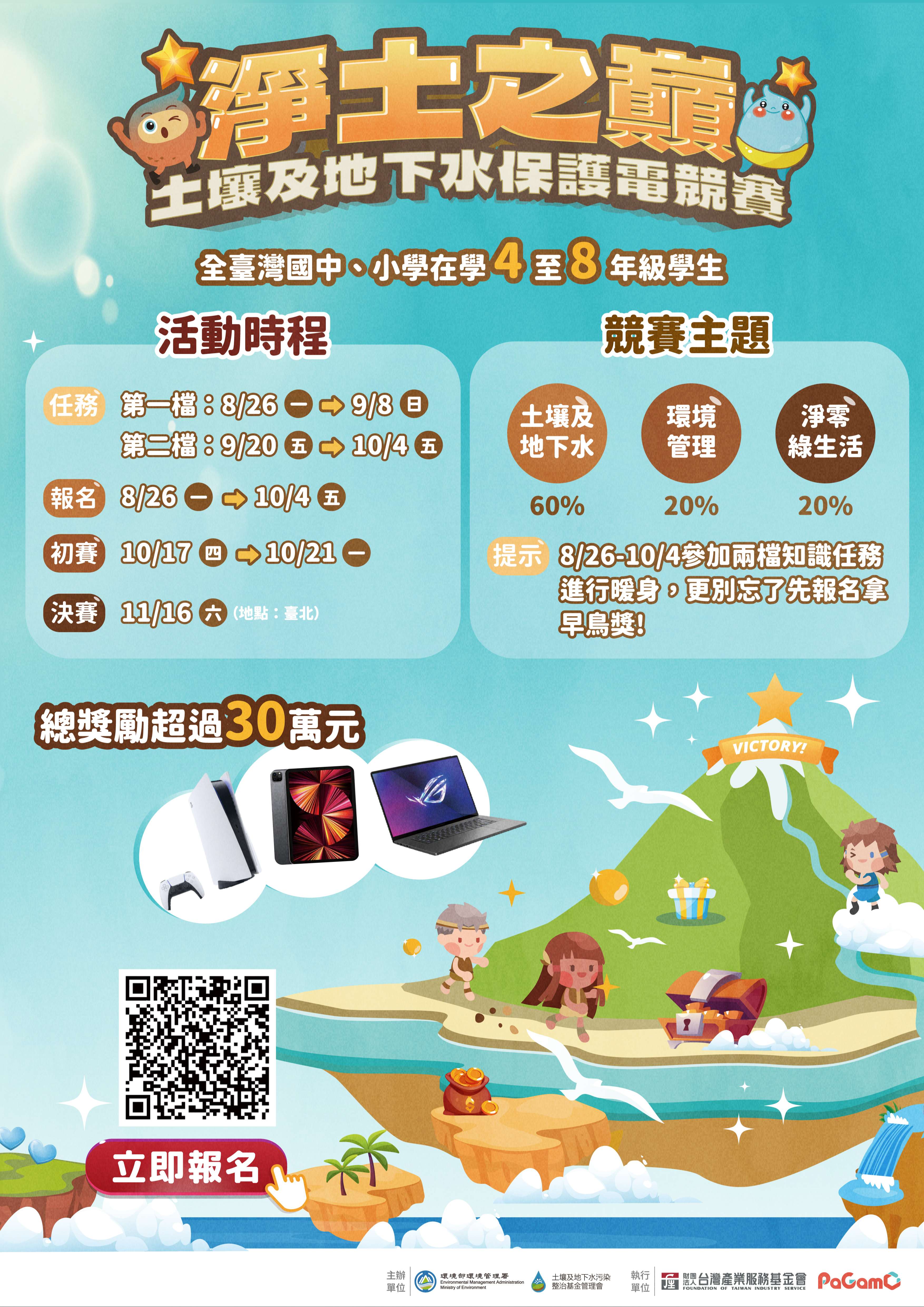 為宣導土壤及地下水環境保護之重要,環境部辦理「淨土之巔一土壤及地下水保護電競賽」活動