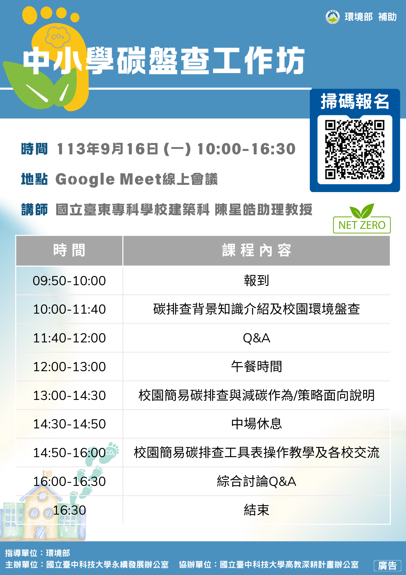 二、 旨揭工作坊為協助教師理解校園碳盤查與國際淨零排放趨勢間之連結,使教師熟悉碳盤查過程並運用「校園簡易碳盤查手冊」於教學中,從而能夠引導學生深入了解淨零排放與減碳行動,培養其永續發展的意識與實踐能力,以達到校園環境永續管理的目標。