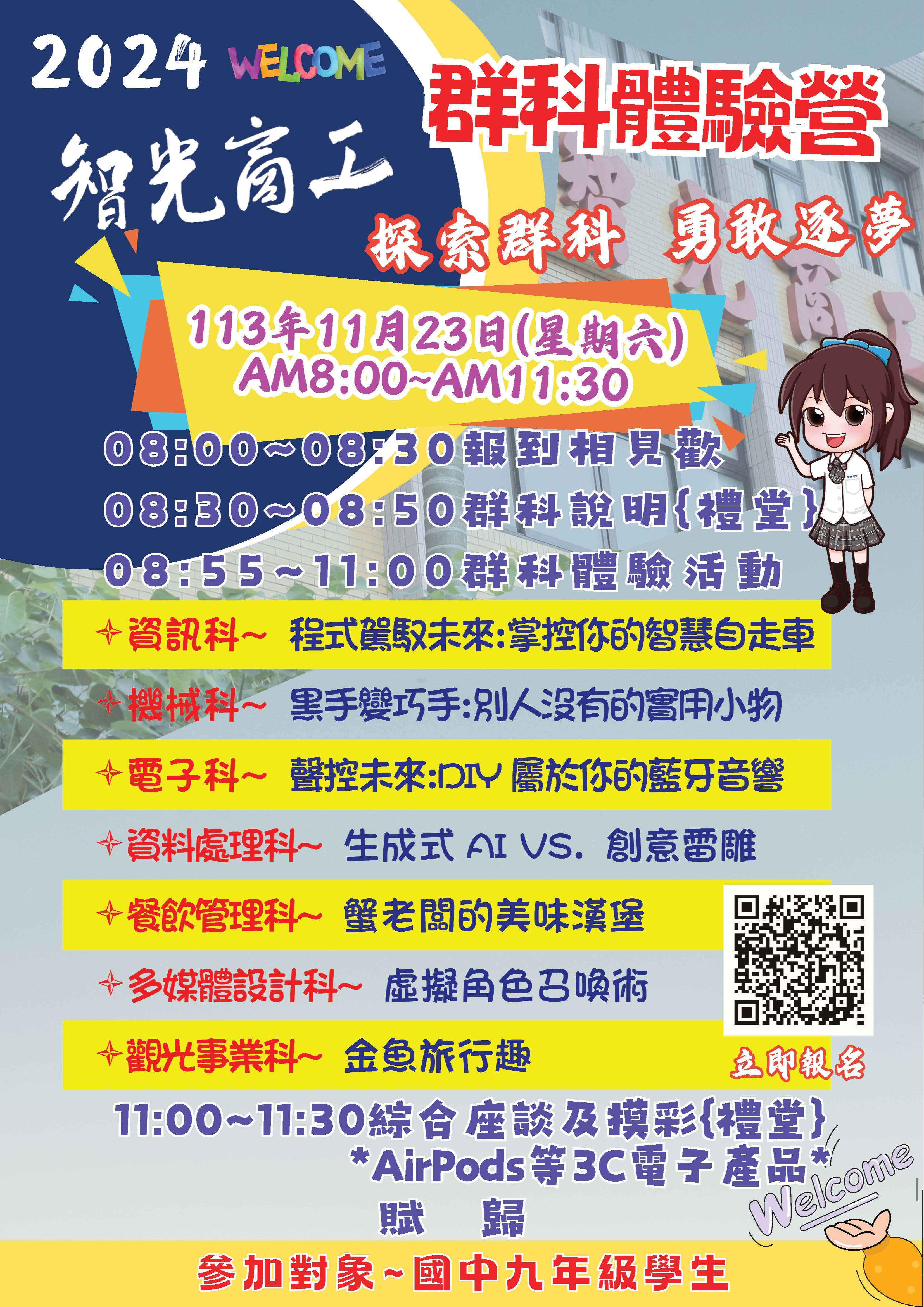 五、活動聯絡人:智光商工教務處招生組劉仲平組長,電話 (02)-2943-2491分機888。