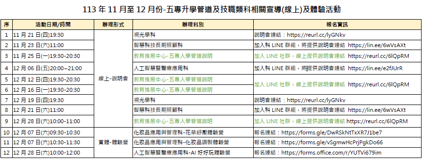 一、活動時間:113年11月-12月份,活動詳細內容如附件所示。