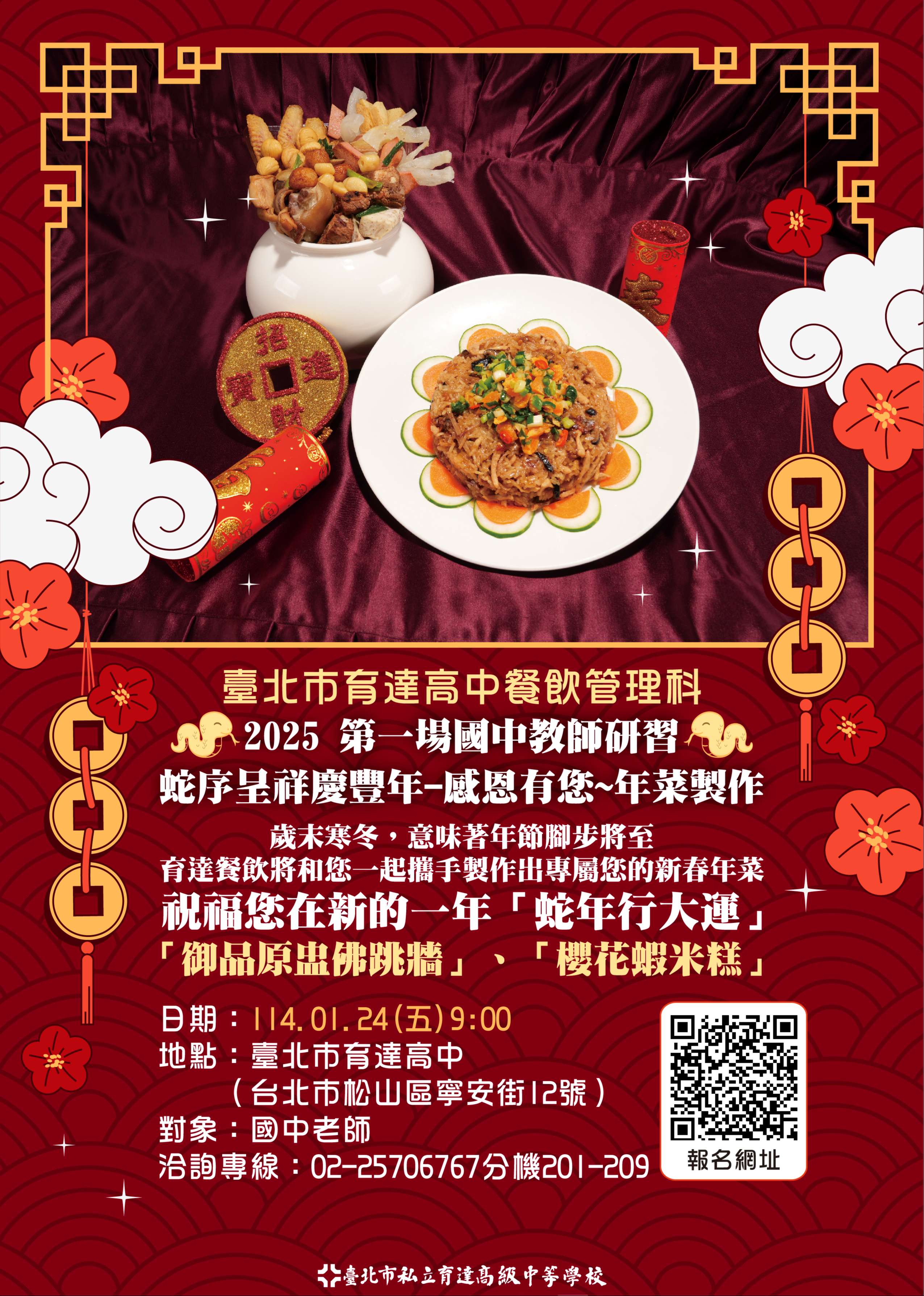 一、活動日期及內容:114年01月24日(五)上午9點,料理內容為御品原盅佛跳牆、櫻花蝦米糕。