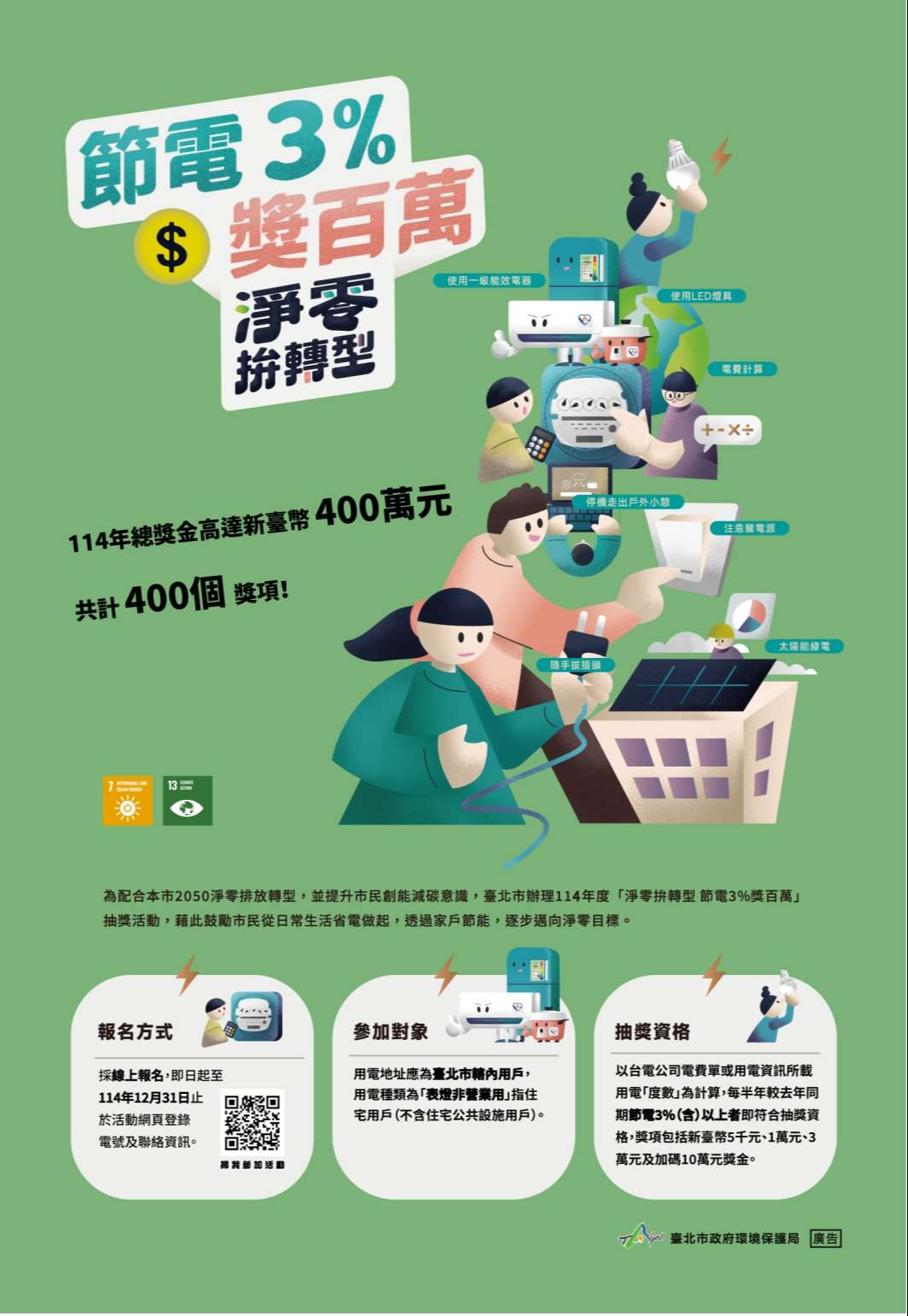 臺北市環保局「淨零拚轉型節電3%獎百萬」活動海報1份