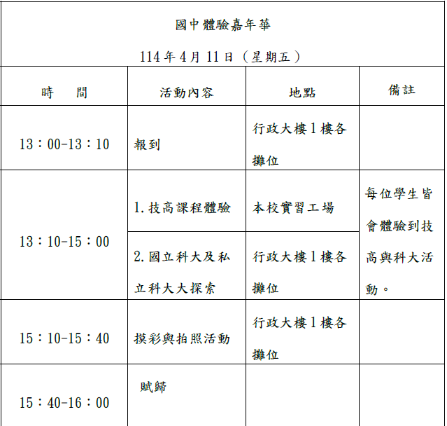 (一)活動日期:114年4月11日(星期五) 13:00~16:00。
