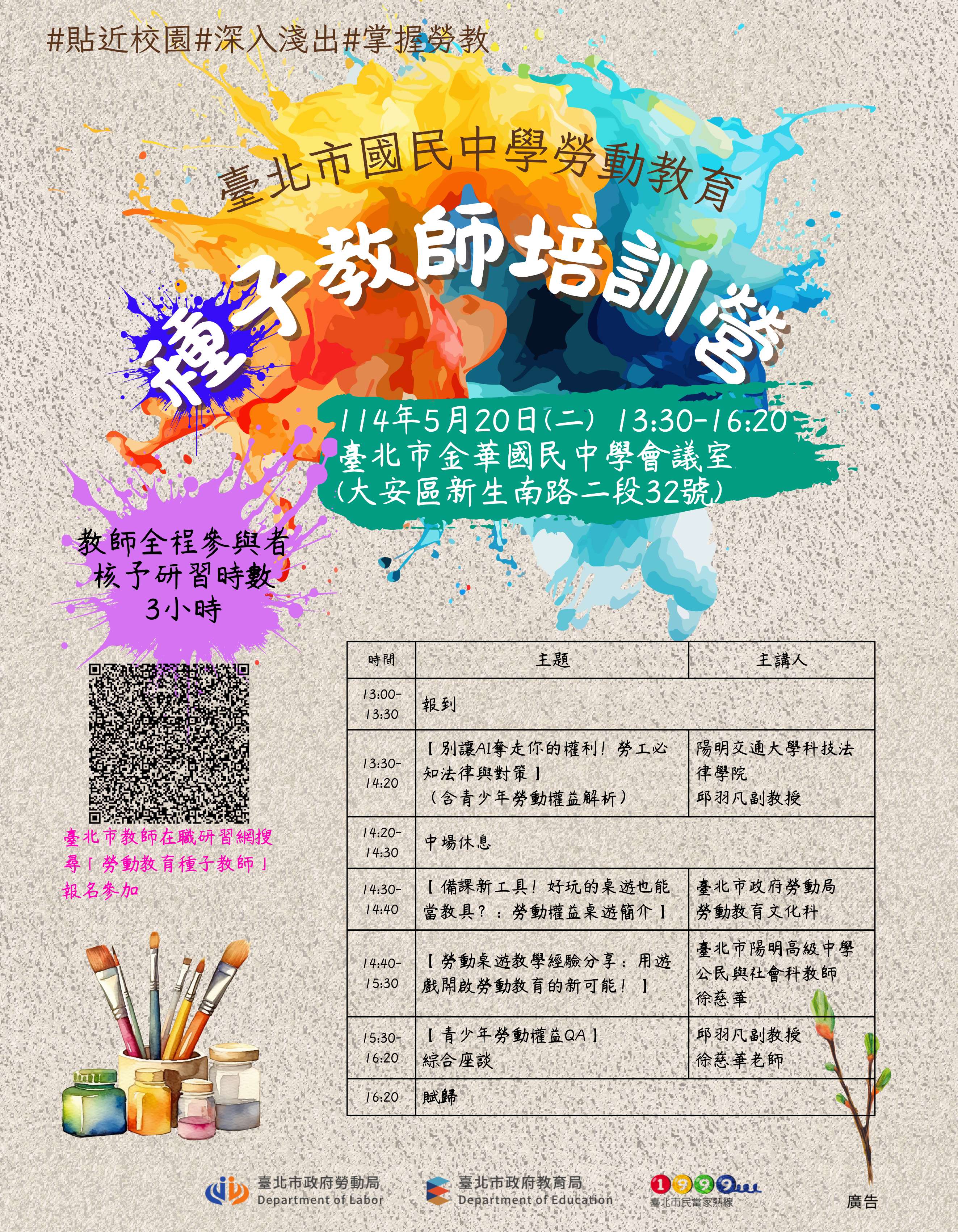 育,每年度辦理高中職教師勞動教育種子教師培訓營,並