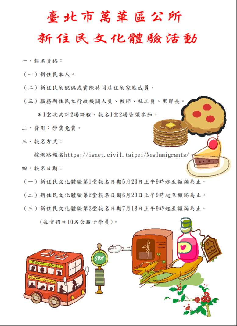 臺北市萬華區公所將於114年6月1日、6月28日、7月26日3場次,假臺北市臺北市萬華區辦理文化體驗活動歡迎報名參加!