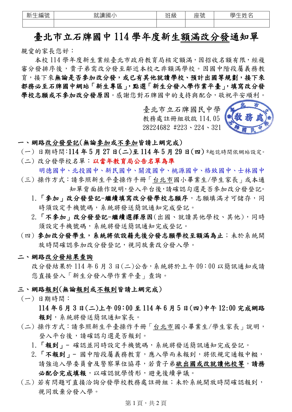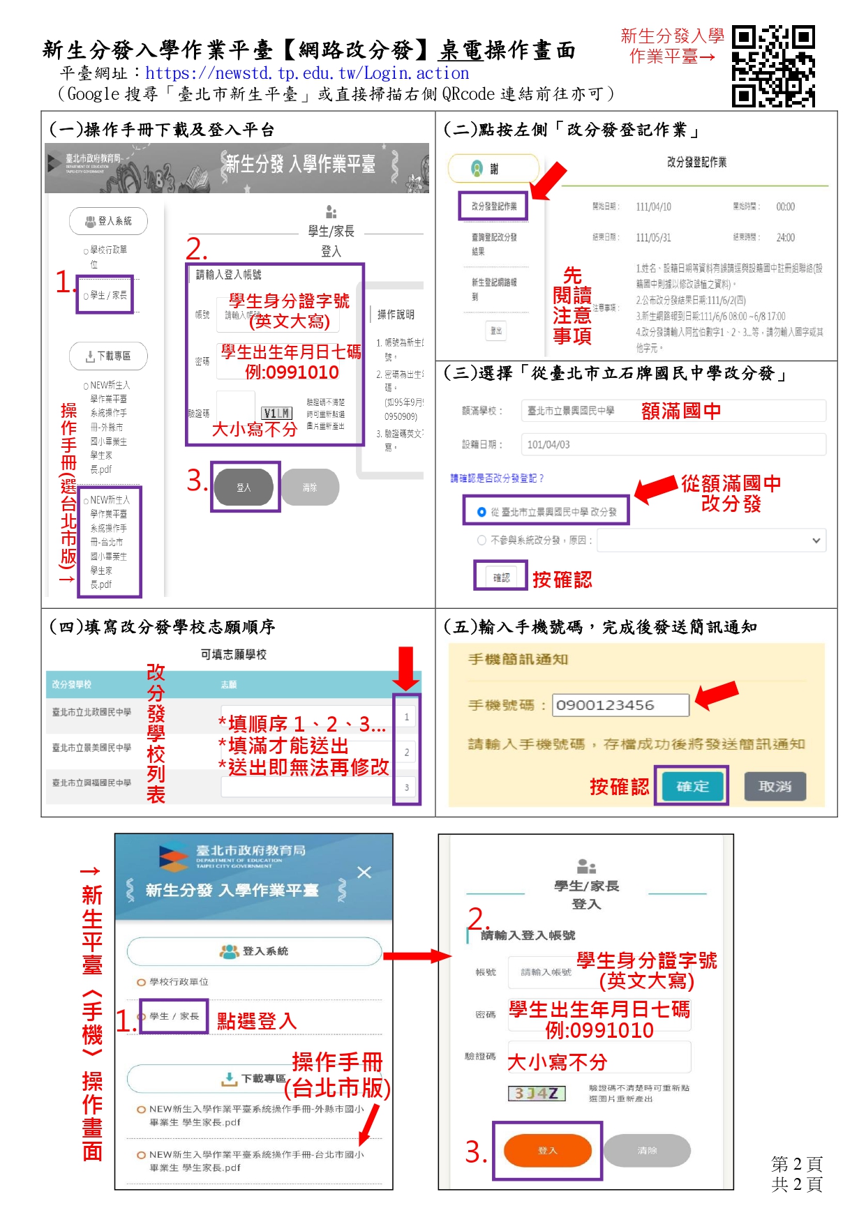 臺北市新生分發作業平台:https://newstd.tp.edu.tw/Login.action(請點選網址)