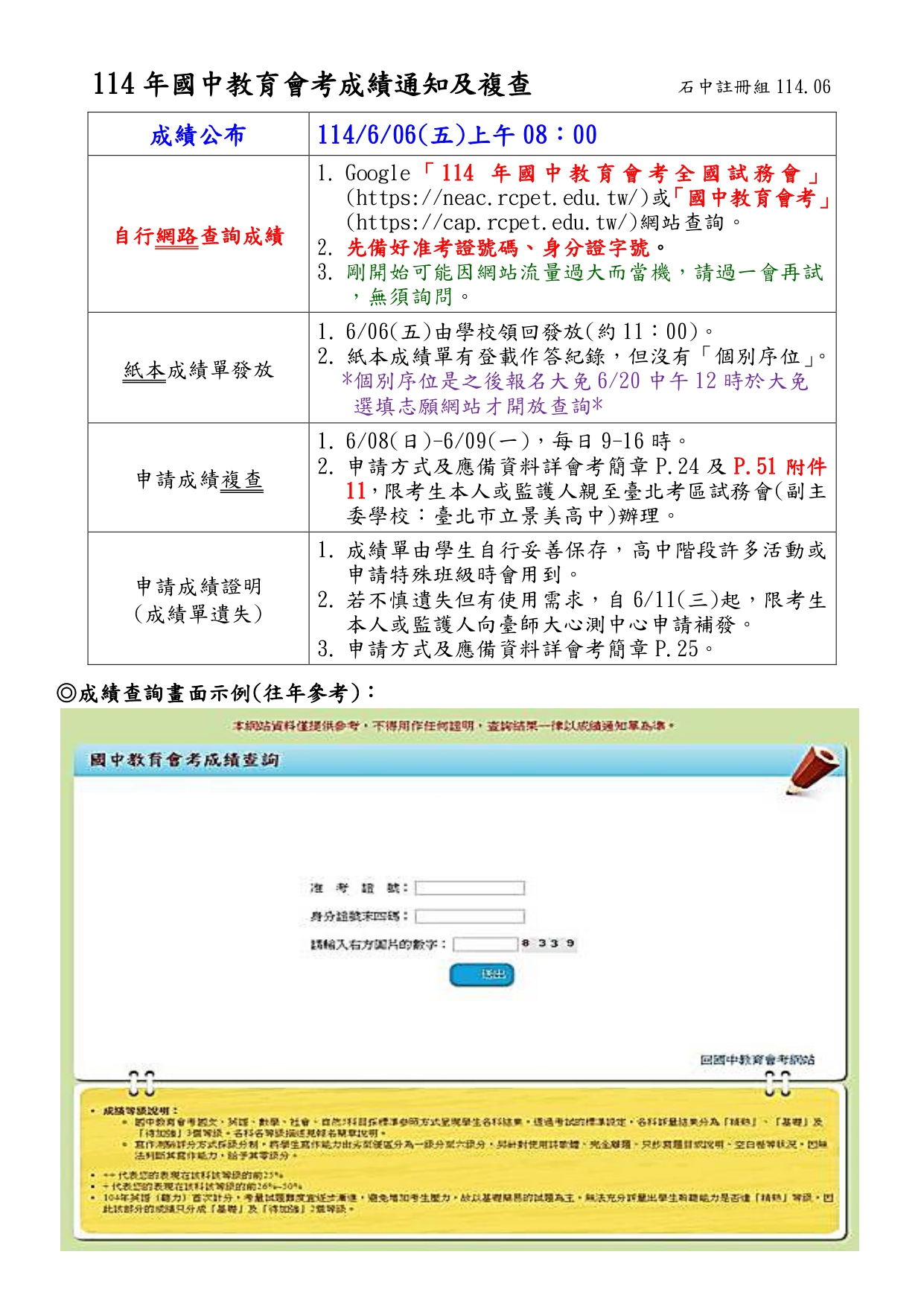 國中教育會考成績查詢: 請點 https://reurl.cc/GAEZyv