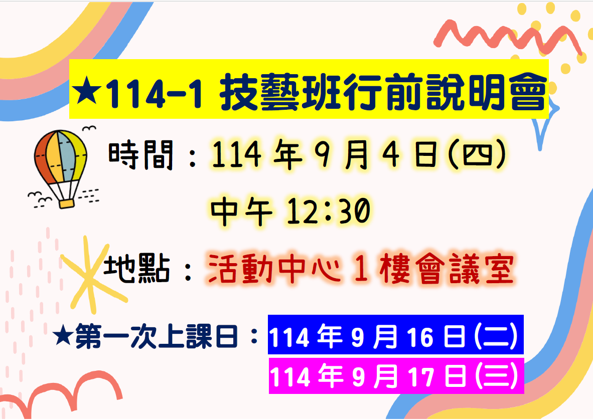 行前說明會:114.9.4(四) 12:30在活動中心1F召開