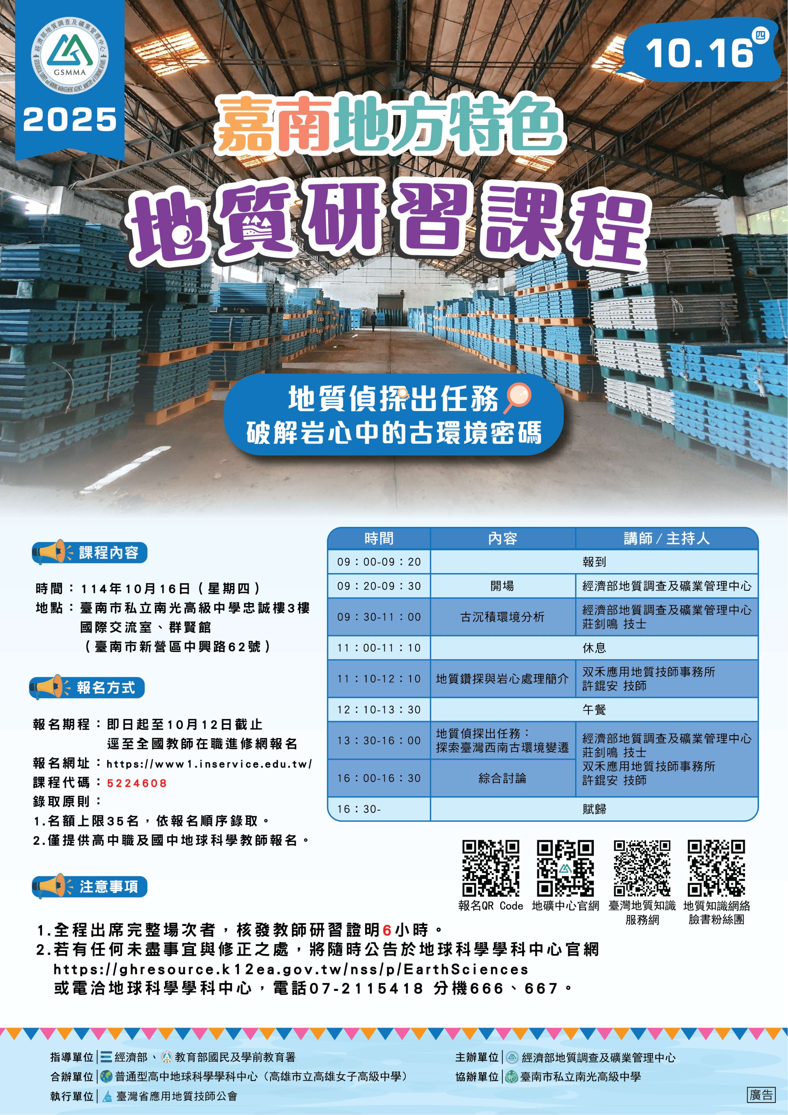 二、研習時間:114年10月16日(星期四)09: 20-16: 30。