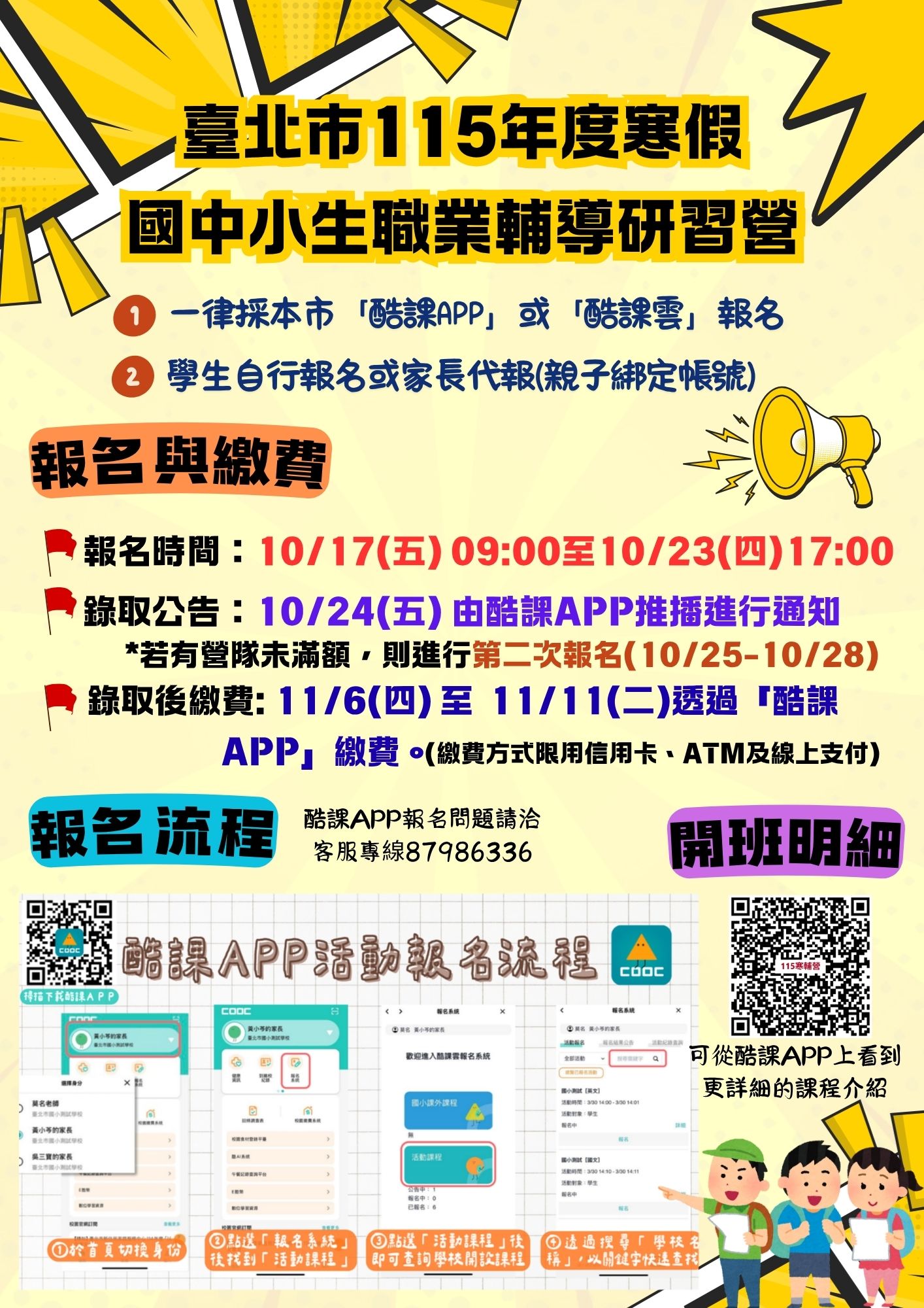 115年寒假職業輔導研習營(簡稱寒輔營)改以酷課APP或酷課雲線上報名