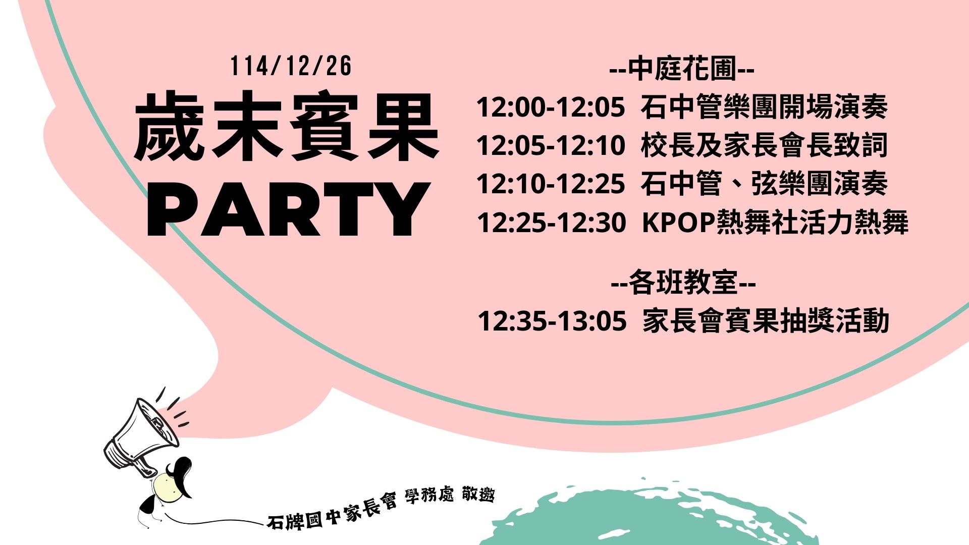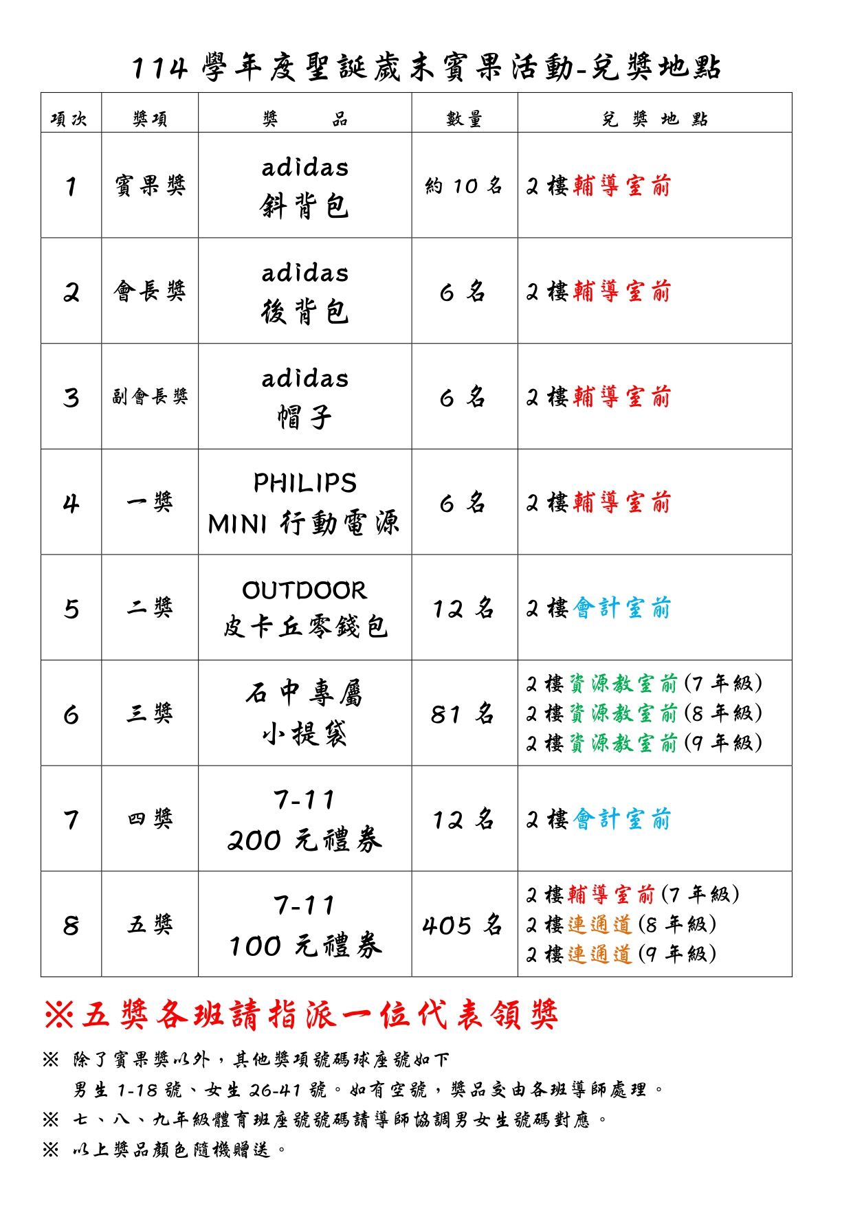 感謝石中家長會提供豐富獎項!敬邀親師生同歡,感恩歡慶歲末