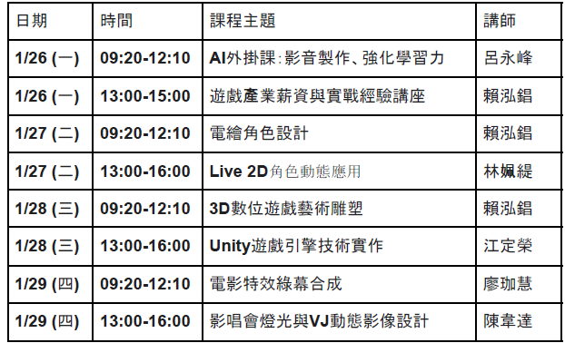 四、上課時間:2026年1月26日(一)~1月29日(四)。