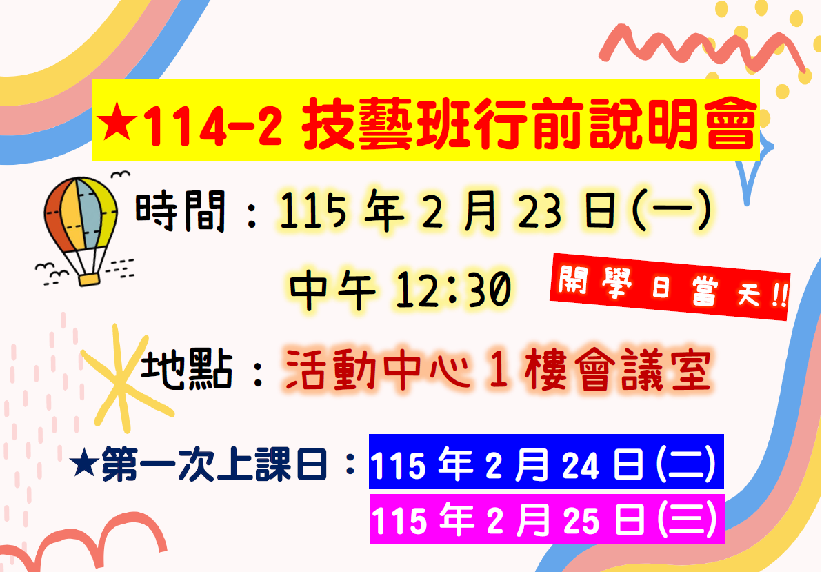 行前說明會:115.2.23(一) 12:30在活動中心1F召開