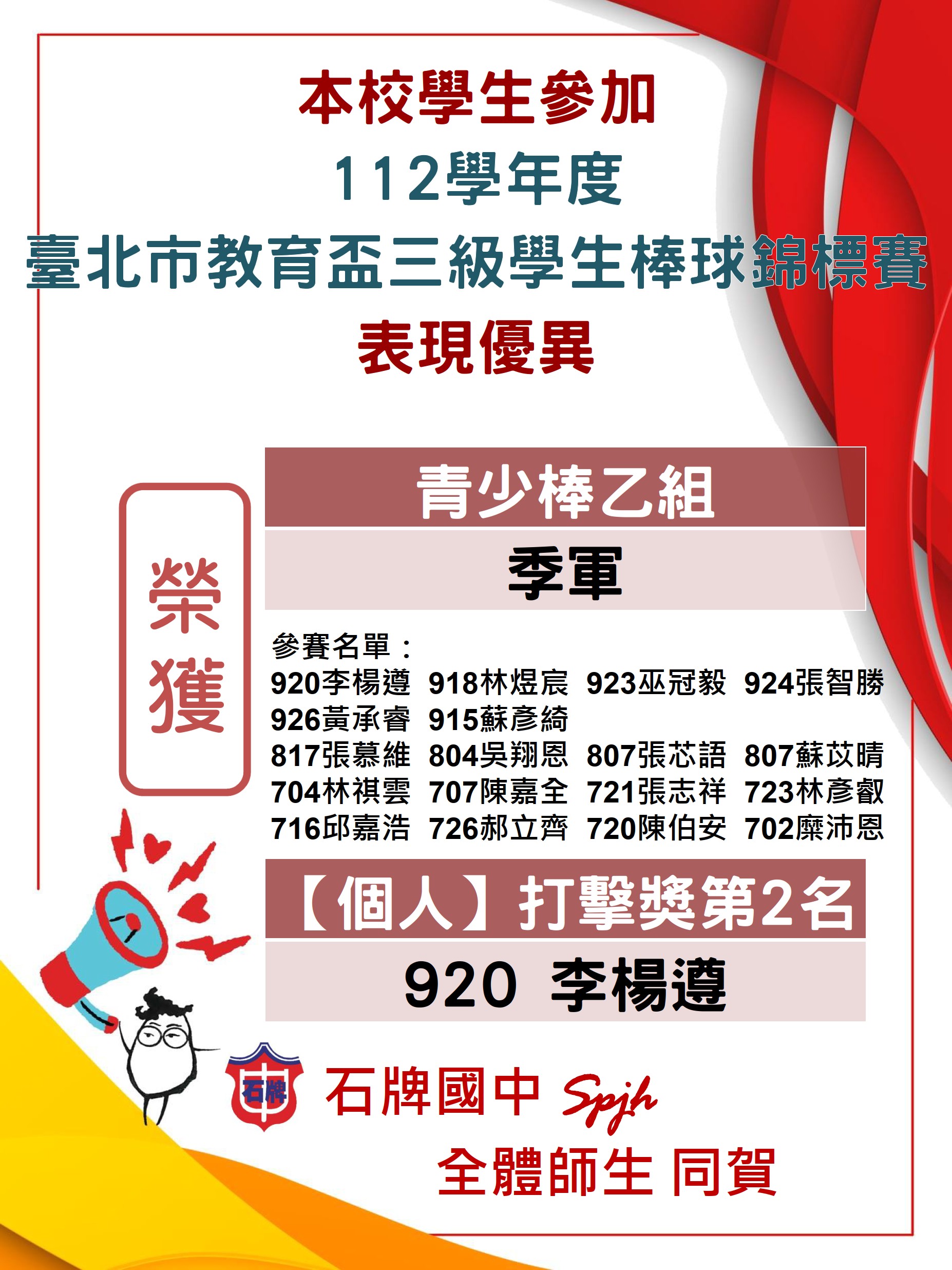 920李楊遵 918林煜宸 923巫冠毅 924張智勝 926黃承睿 915蘇彥綺